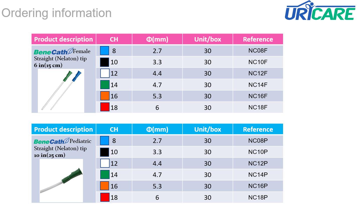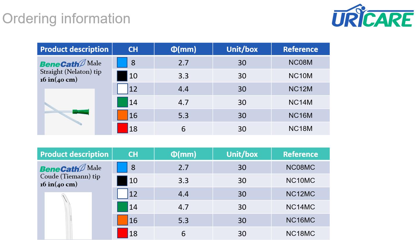 ·       Available with standard tip(Nelaton tip) or Coude tip(Tiemann tip)